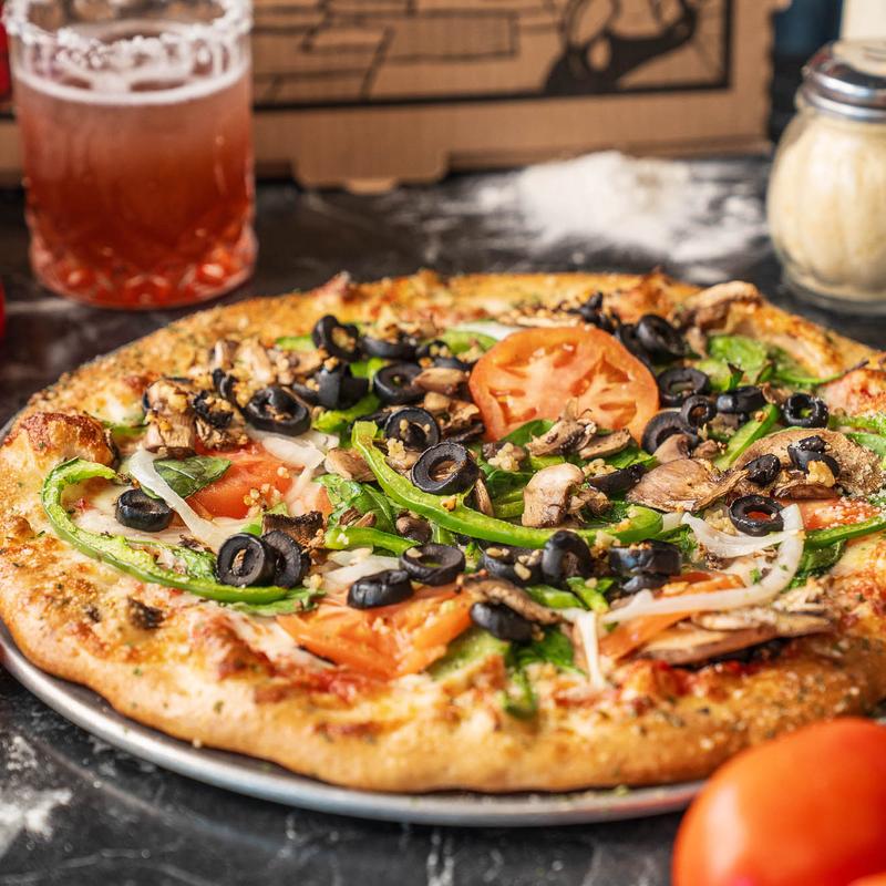 Vegetarian option. Fresh spinach, mushrooms, onions and peppers with ricotta and mozzarella cheese and our house made marinara sauce