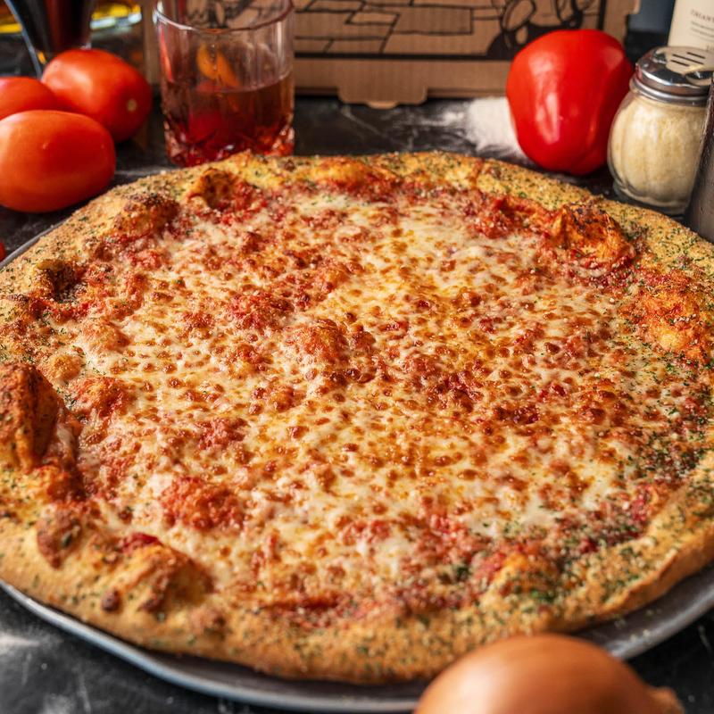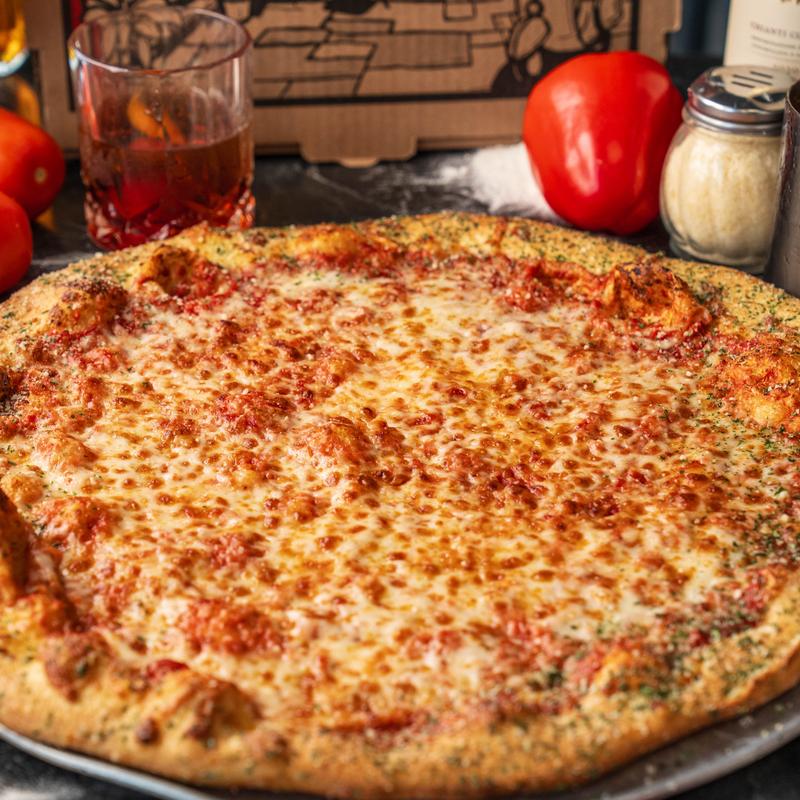 Cheese pizza with one meat or veggie topping. Specialty toppings extra